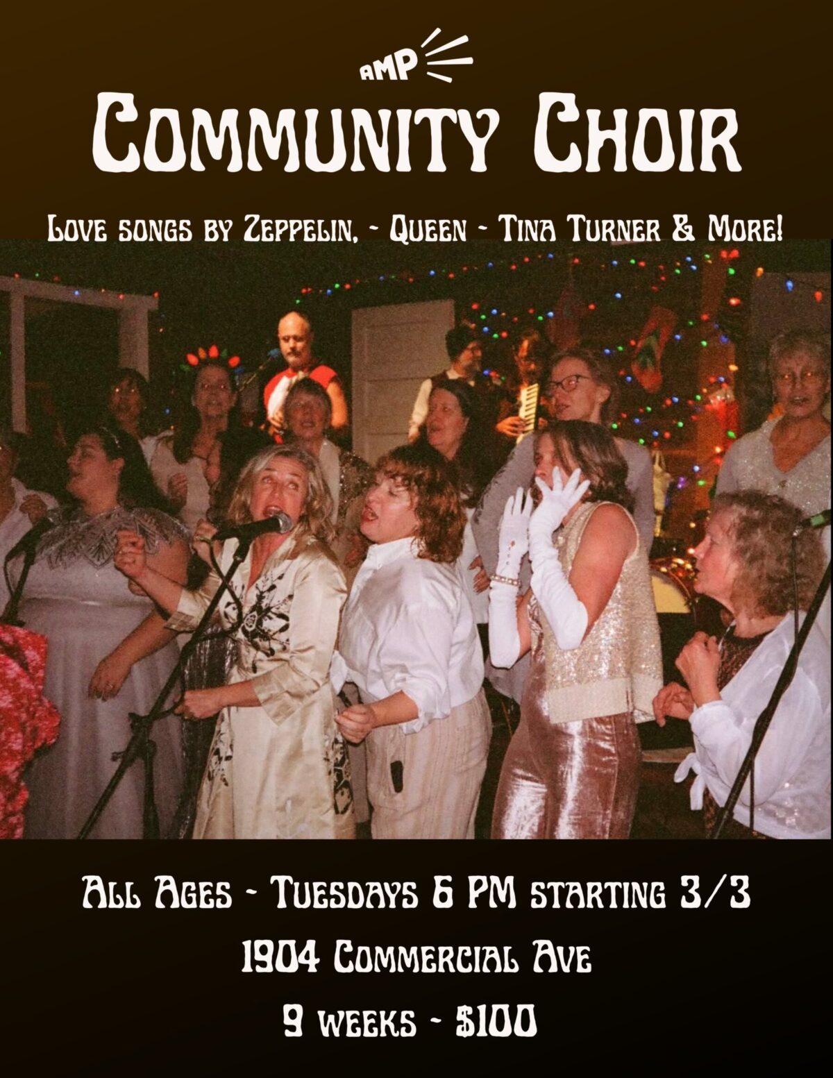 Join us for a joyful, all-ages Community Choir experience celebrating love songs from Led Zeppelin, Tina Turner, Queen, and more. Led by the incredible Kathy Moore, this 9-week session focuses on learning harmonies, exploring unique song arrangements, and building connection through music in a relaxed, welcoming environment. No prior choir experience needed.