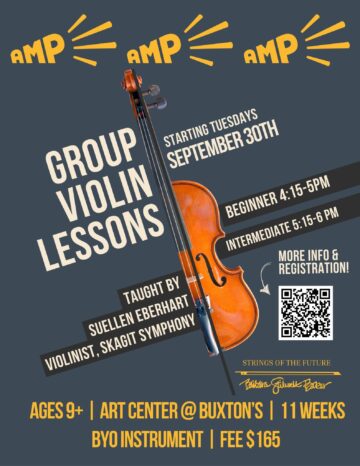 BEGINNER LESSONS: Ages 9-12 (students outside of this age group need to be approved by the instructor). Students will learn the basics of the violin and grow into proficient players! Students will be guided by Skagit Symphony’s own Suellen Eberhart every Tuesday for a 45 minute lesson. All students must rent their own instrument (we recommend Quist in Bellingham). Beginners must order their own copy of Suzuki book 1 from Hugo Helmer or Amazon.