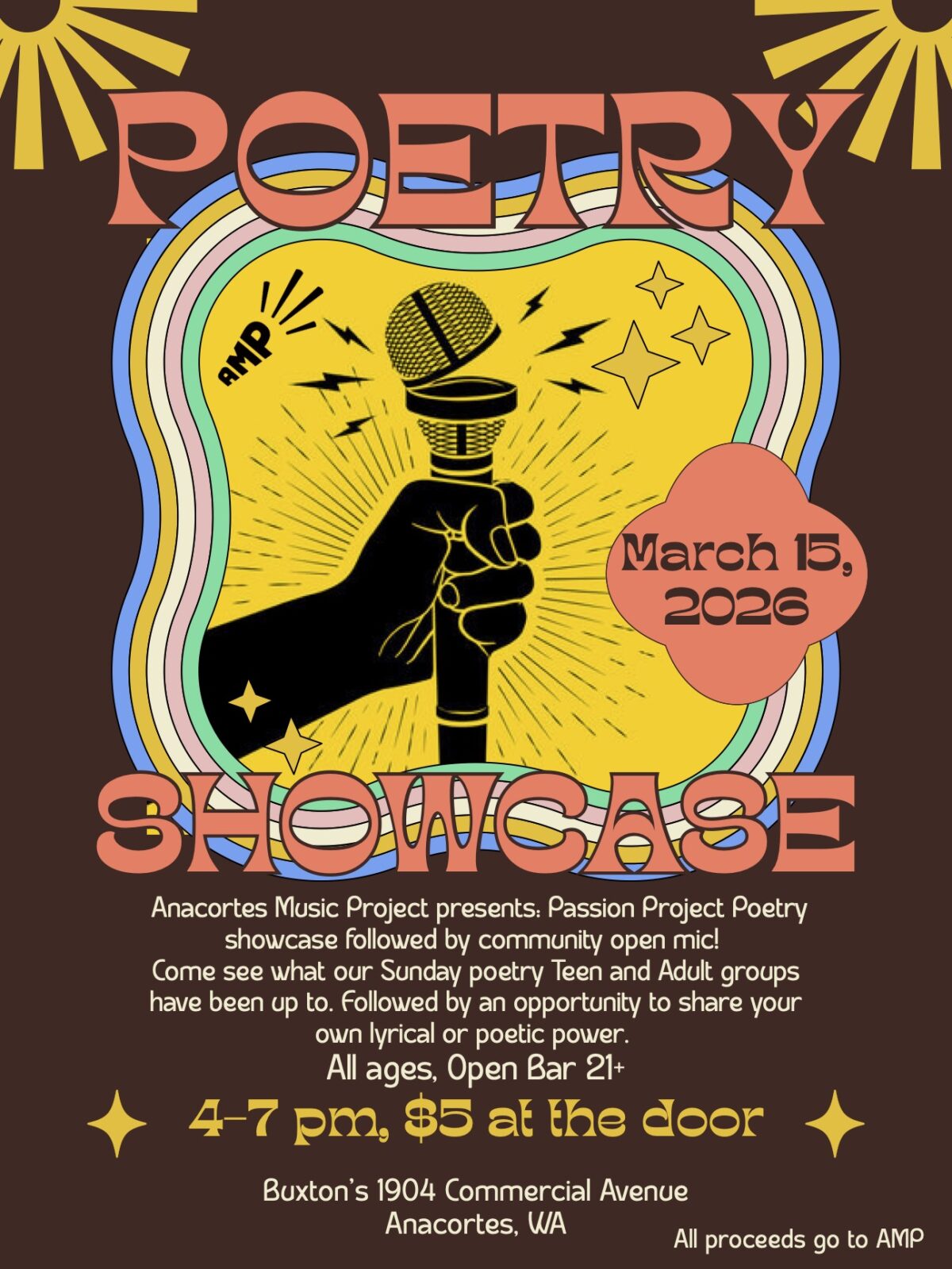 Come on down to Buxton’s March 15th at 4 pm and see our first ever poetry showcase.